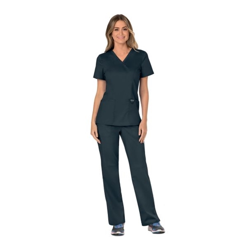 The Cherokee Revolution WW610 Women's Mock Wrap Top From the Cherokee Revolution range is this Women's Mock Wrap Top in a modern classic fit. A flattering and comfortable scrub top to fit all body types.