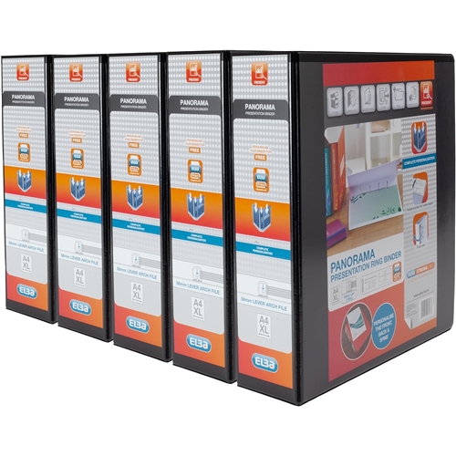 Elba A4 Panorama Presentation Lever Arch File 90 mm BLACK (Pack 5)