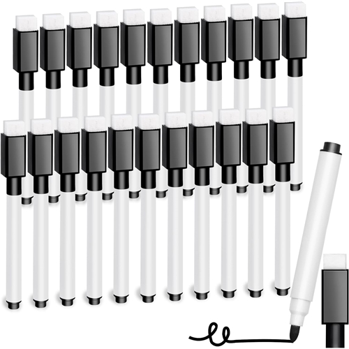 Whiteboard Marker Pens BLACK Fine Tip Magnetic with Eraser (Pack 22)